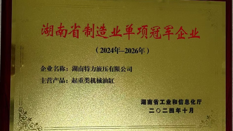 近日,公司憑借著起重類機(jī)械油缸的卓越技術(shù)實(shí)力和市場領(lǐng)導(dǎo)地位,正式被湖南省工業(yè)和信息化廳授予“湖南省制造業(yè)單項(xiàng)冠軍企業(yè)”榮譽(yù),標(biāo)志著我司成為該細(xì)分領(lǐng)域的標(biāo)桿企業(yè)。